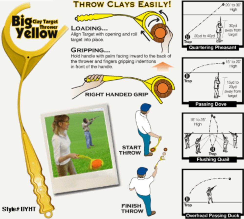 The Big Yellow Hand Thrower is the best deal on a hand thrower. Load this Clay Target with standard 108mm tagets and let them fly. Works with both left and right handed people.