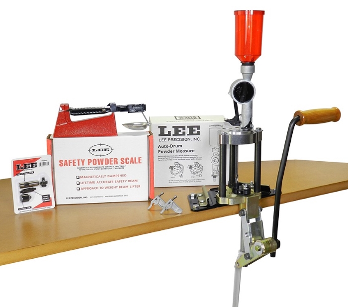 The rugged Lee Turret Press along with the Auto Drum Powder Measure produces top-quality handgun ammo in a hurry. A finished round with a few pulls of the lever. Large enough to handle monster-belted magnum rifle cases. When it is time to change calibers, simply lock in a new turret and begin loading within seconds. In addition to the Turret Press and Auto Drum Powder Measure; the kit includes the Lee Safety Scale, unmatched for sensitivity, a primer pocket cleaner, a cutterand lock stud to trim the cases, and a chamfer tool to deburr cases after trimming.