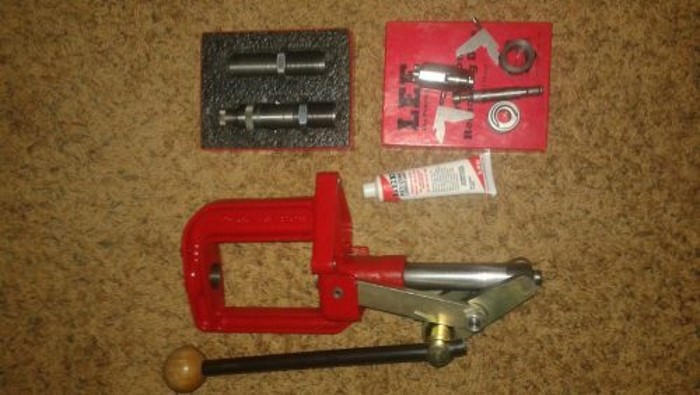 Also includes large and small primer arms as well as a die bushing for reloading with standard 7/8 x 14 thread dies. |