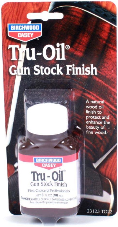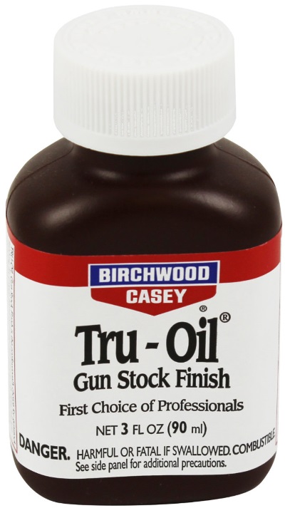There is no better oil finish than the Birchwood Casey Tru-Oil! It has been the professional’s choice for gunstock (or furniture) finishing for more than 30 years. Its unique blend of linseed and other natural oils dries fast, resists water damage and will not cloud, yellow or crack with age. Excellent as a sealer for under butt plates, recoil pads and in inletted actions to prevent stock damage. Use the liquid for fast filling of the pores. Tru-Oil penetrates deeply and forms a tough, clear, hard finish that protects and enhances the beauty of wood. The finish can be polished to a high gloss or "cut" for a satin finish.