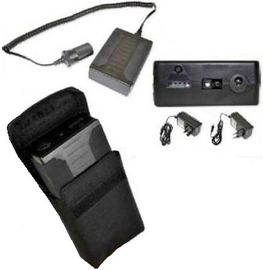 Includes carry pouch with belt loop, 12v DC charger, and 240v mains charger.