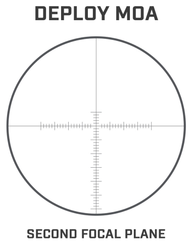 * Deploy™ MOA reticle - Compatible with multiple calibers. The thin reticle doesn't obscure the target, and MOA hashmarks aid in windage and elevation holdovers.