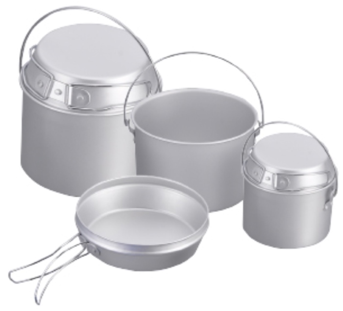 Comprehensive, lightweight aluminium Billy Set made up of a small, medium and large billy as well as small, medium and large multi-purpose lids. Split the set up depending on your needs, or stack the full set together to easily feed larger groups. Total weight: 700g.