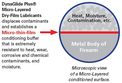 DynaGlide Plus® Micro-Layered, Dry Boundary Films Conditioners/Lubricants offer the firearm owner a powerful way to keep a firearm in pristine condition through a broad spectrum of protective, and time/labor saving benefits.