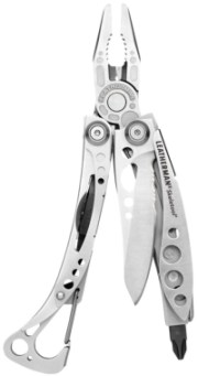 The sleek new Leatherman Skeletool CX gets you back to basics... very cool basics. The Skeletool CX has only the most necessary of multi-tool features, because sometimes that's all you need. With a 154CM stainless steel blade, pliers, bit driver, pocket clip and carabiner/bottle opener, you're set. Lightweight, low volume, perfect size. The Skeletool CX: Who says more is better?