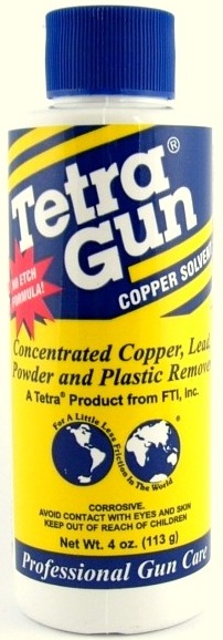 Tetra Gun Copper Solvent quickly removes all contaminants from firearm barrels. Use as the first step in bore conditioning. This solvent won't “etch” the barrel and it will remove copper, lead, plastic, carbon, dirt. Fast acting, extra strength formula.