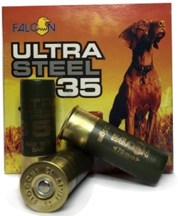 The Falcon Ultra Steel 35 is by far our most popular steel hunting cartridge for 2 3/4`` chambered guns. Falcon Steel hunting cartridges are loaded here in New Zealand and ideally suited to New Zealands unique hunting conditions. Our cartridges are loaded with the very best quality steel shot and powders available to ensure a consistant hard hitting performance everytime in all climatic conditions. We have now defined a line of steel hunting cartridges which are widely accepted by New Zealand hunters. |