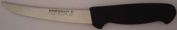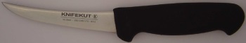 The Knifekut Montana Boning Knife 6in wide has a 15cm curved wide blade with a medium flex made from quality German steel. It has an industrial grade plastic resin handle with an anti slip texture.