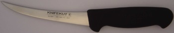 The Knifekut Montana Boning Knife 6in has a 15cm curved blade with a medium flex made from quality German steel. It has an industrial grade plastic resin handle with an anti slip texture.